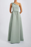 Previous Product Next ProductStyle GB330A/West: One shoulder bow dress in faille.